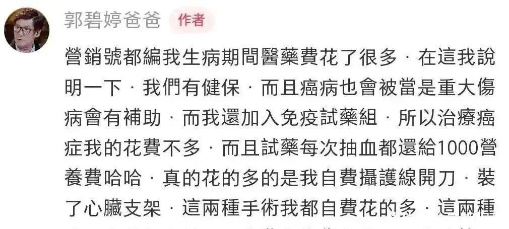 反正啊,要是拿了向家的钱,就被人说成是为了钱才嫁进豪门;要是用自己的钱呢,又被人说成是向家没给钱。不管怎样,郭碧婷都得被人说三道四。如今她拿自己的钱给父亲治病,还得操心孩子和家里那些猫狗,日子过得跟大家想象中的“豪门阔太”完全两码事,结果就传出了向家手头紧、向太故意装好婆婆的谣言。不论是郭碧婷出来解释,向太出来说明,还是郭爸爸出来表态,都免不了被当作娱乐话题。